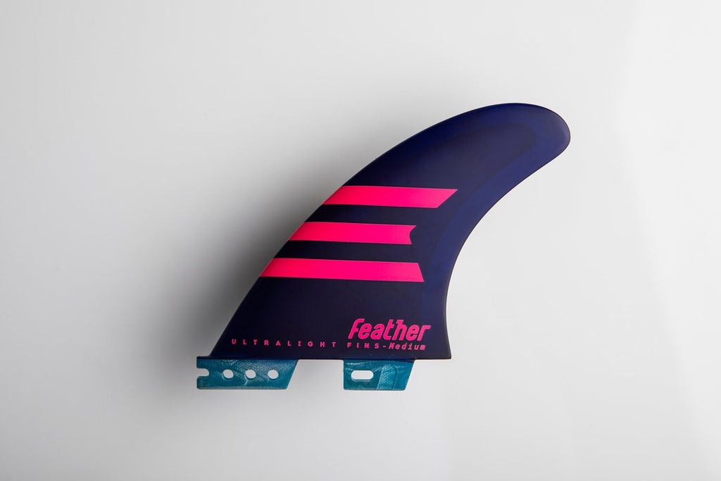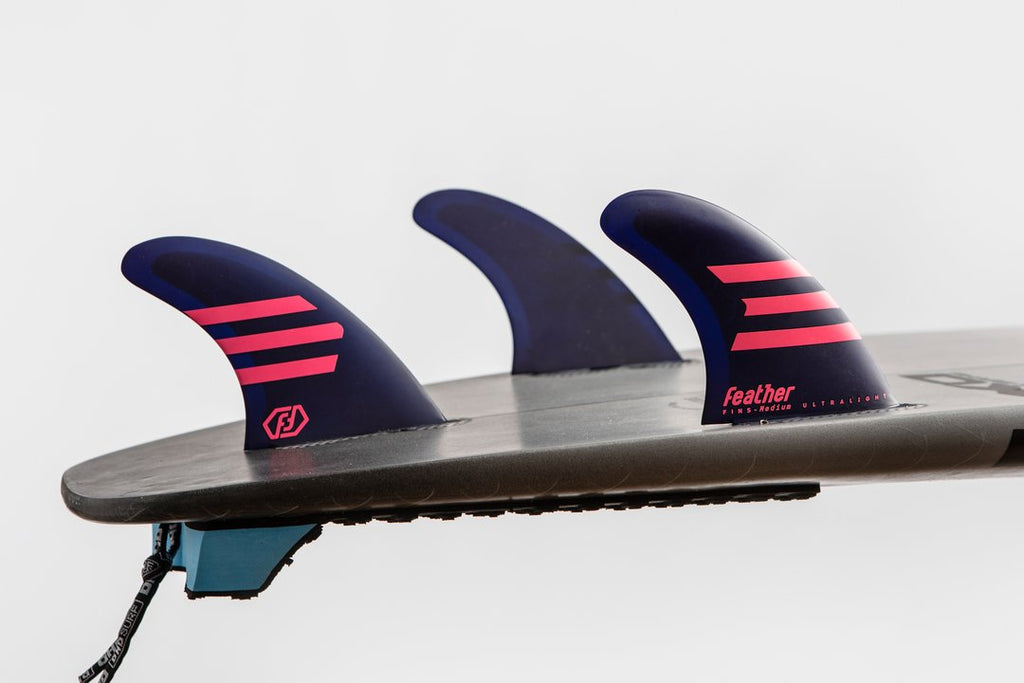 Hexagonal Core material and construction is designed to deliver the feeling of a traditional fiberglass fin with the added performance of reduced weight. The RTM (Resin Transfer Moulding) process produces a lightweight fin with remarkable flex, a smooth feel and an impressive aesthetic.