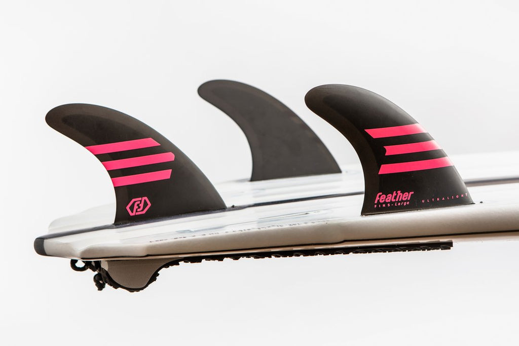 Hexagonal Core material and construction is designed to deliver the feeling of a traditional fiberglass fin with the added performance of reduced weight. The RTM (Resin Transfer Moulding) process produces a lightweight fin with remarkable flex, a smooth feel and an impressive aesthetic.