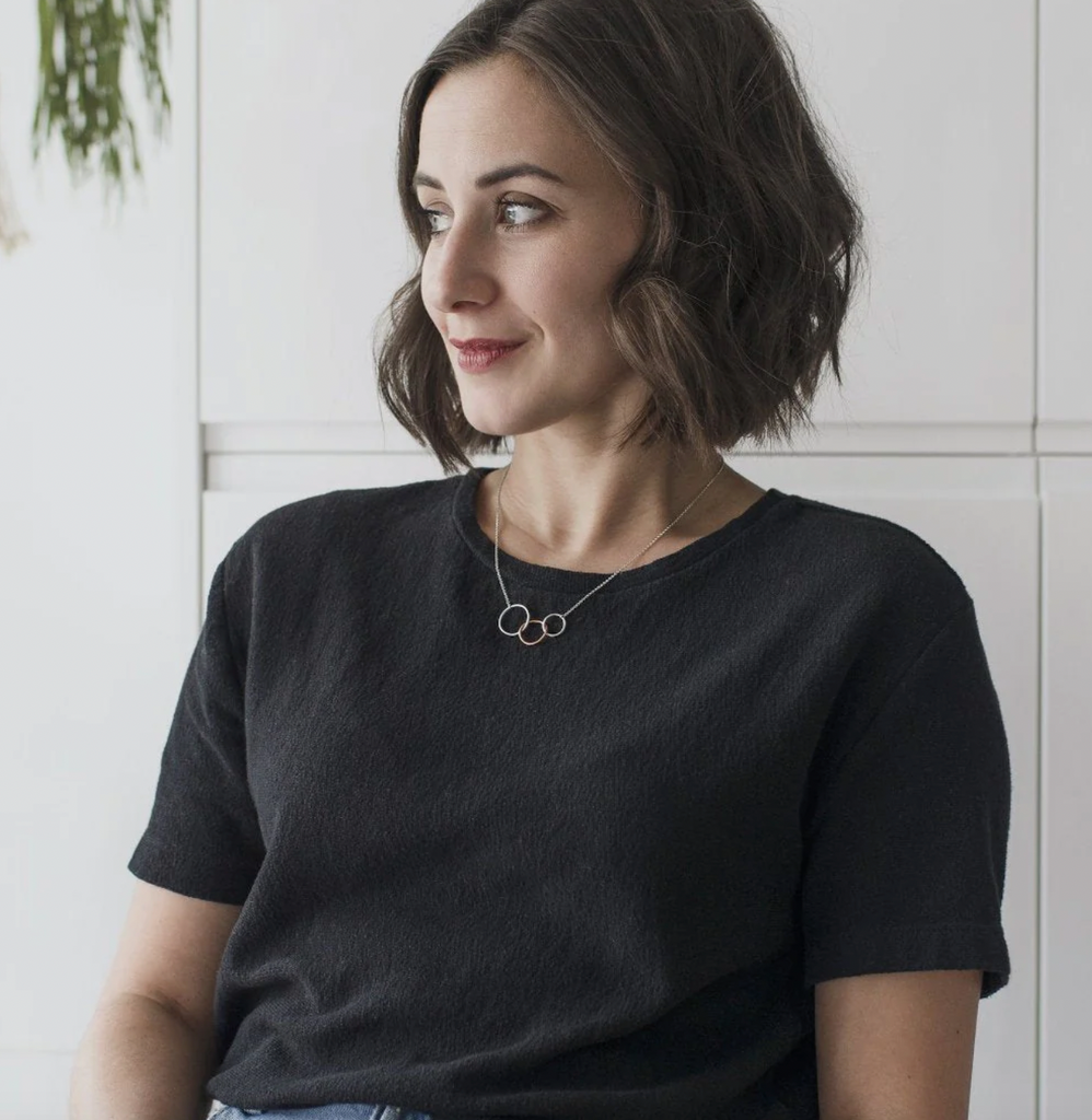 Three sterling silver interlocking circles on a strong but fine silver chain. In collaboration with renowned Instagram influencer Dominique, aka, 'All That Is She,' and her playful hashtag creation #AllThatIsThree. The chain is like a jewellery version of the 'Mama, Daughter, Daughter' images Dominique has created with her daughters.