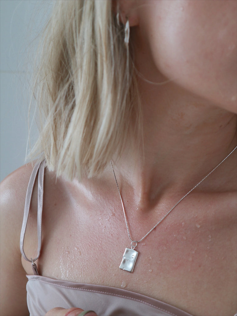The Liquid Name Tag is like a well-worn piece of rectangular sea glass, tousled by waves and grit but literally dripping in a sense of its own beauty. It travels, like liquid into places where words don't reach- your ID token, your tag under your armour or proudly exposed.