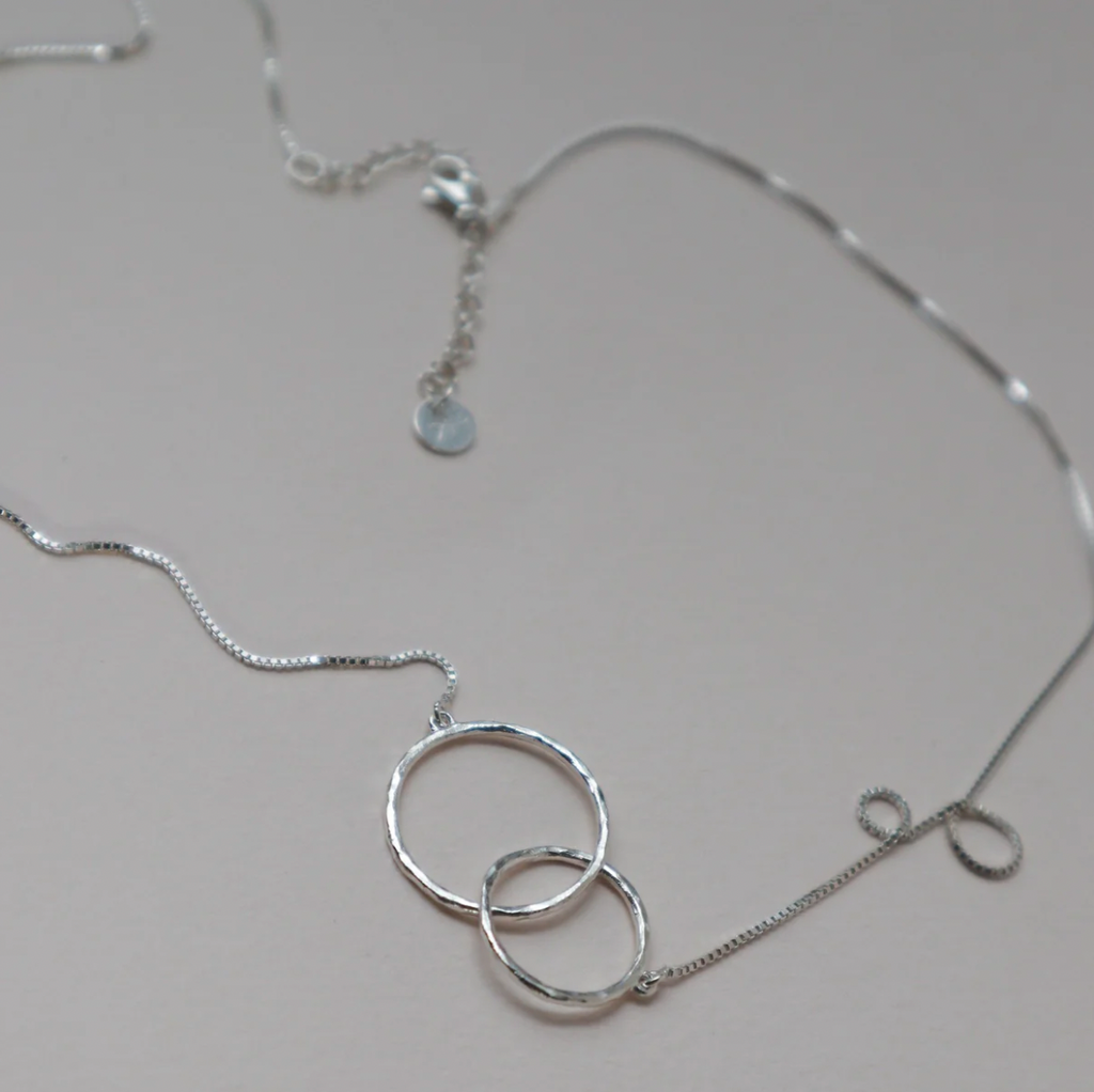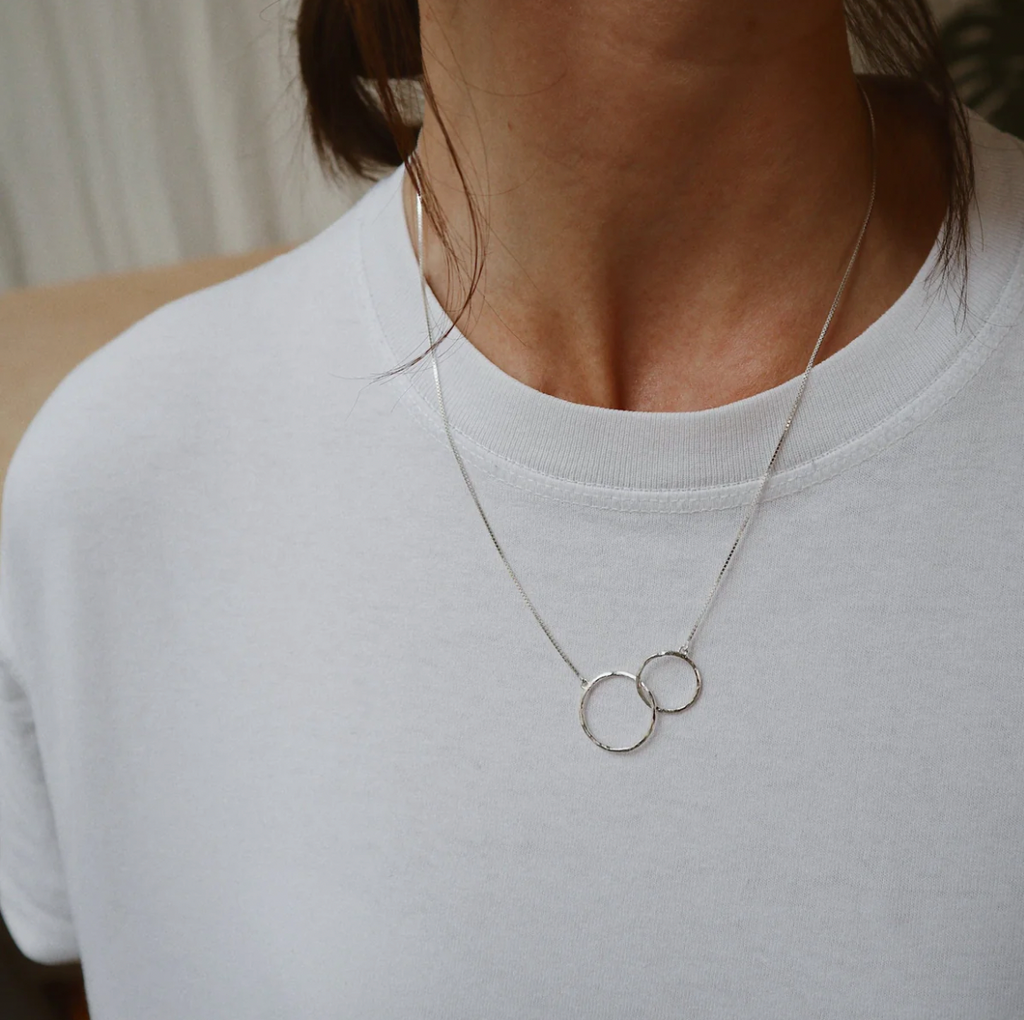 Two hand textured, 1mm thick unpolished, sterling silver, interlocking double rings. Simplicity, daintiness & the embodiment of what Lines & Current is about. The Elska meaning 'to love,' is your 'you & me' necklace, your 'sister & sister' chain or your 'only I really know why I bought it' charm. Designed to be worn, time and time again, the Elska infinity necklace will be your forever-pal. Minimal but with meaning.