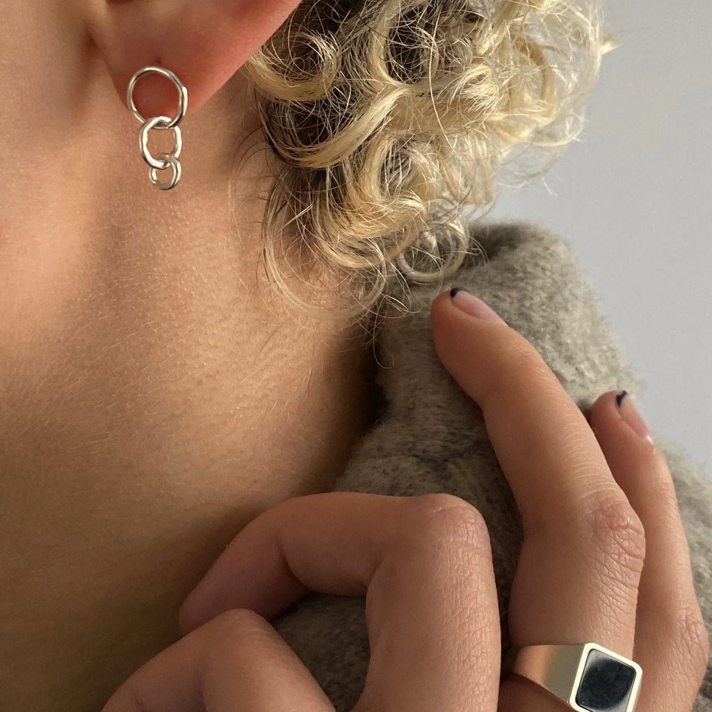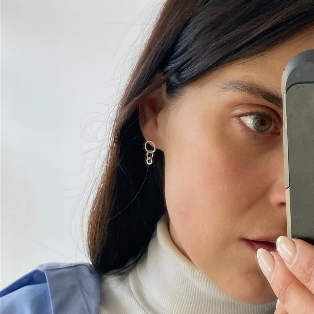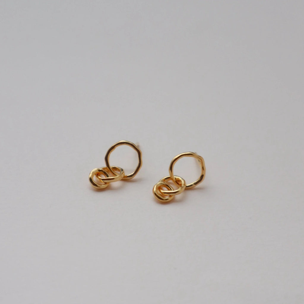 Three imperfect interlocked open circles. Fusing elements of minimalism with a LoFi everyday vibe, the 'Frieda' earrings are understated, happy lil' hanging studs that'll swing with you all day long.
