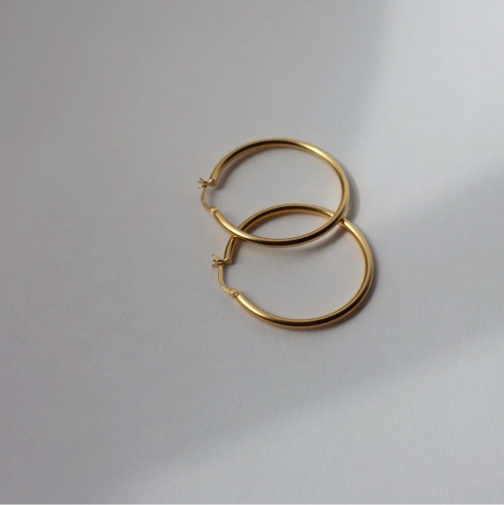 Meet the Pamela pipe hoops. At 35mm diameter, these girls are everyones big hoop essential. The best in daytime to dinner ear-wear.