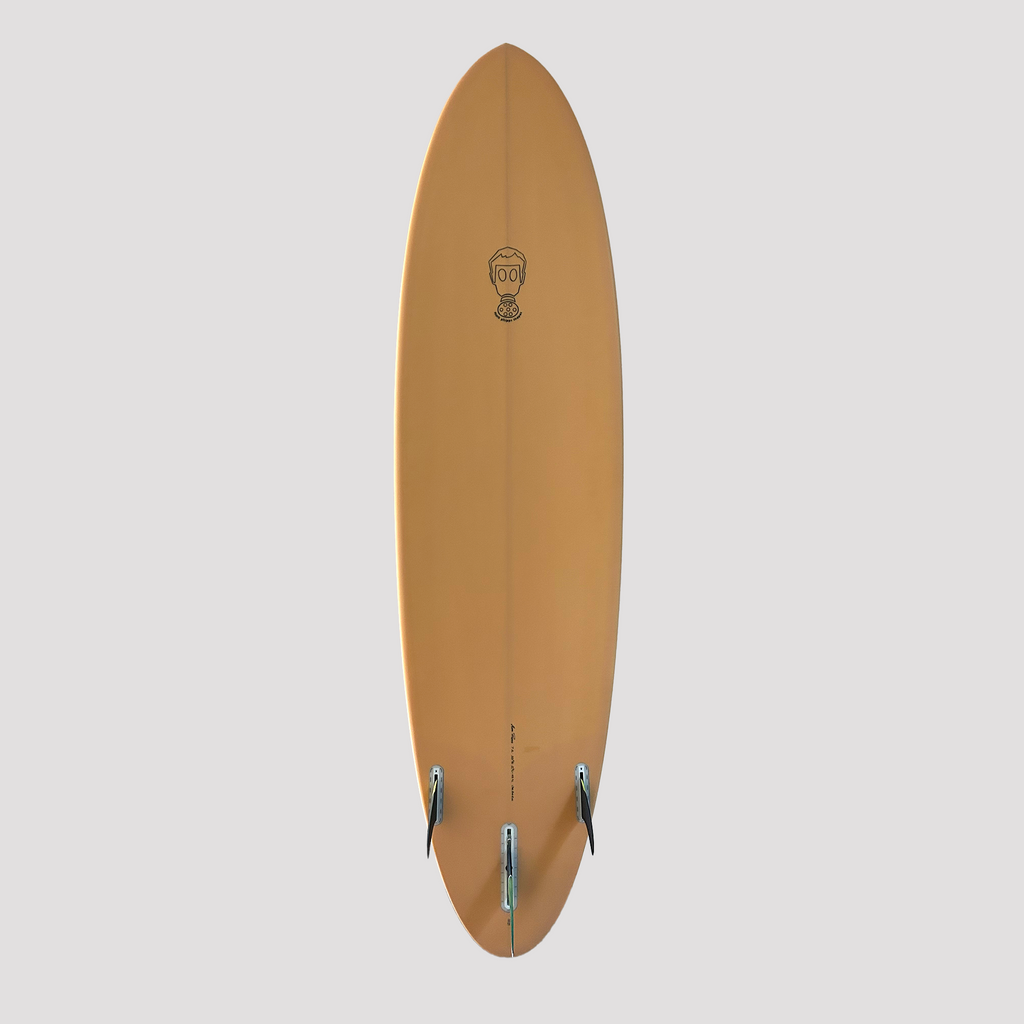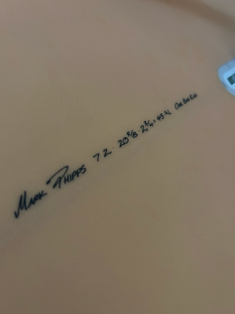 Clean lines of a performance egg with low rails and slight concave to V bottom. This board is amazing in big overhead surf with incredible paddle power and drive.