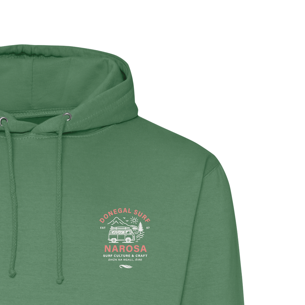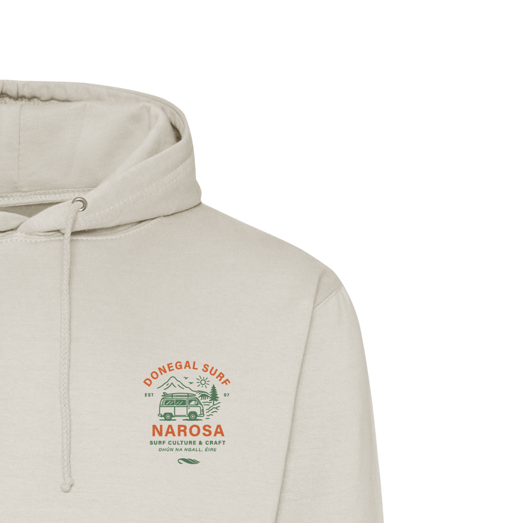 Introducing the Donegal Surf Hoodie, your staple Narosa piece for spring. Available in 3 colours, this hoodie features a 2 tone chest print showcasing Donegal surf culture and craftsmanship at Narosa. Stay stylish and comfortable while representing the best of the Irish surfing community.