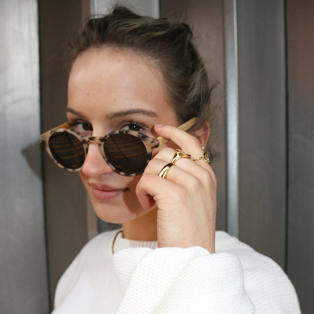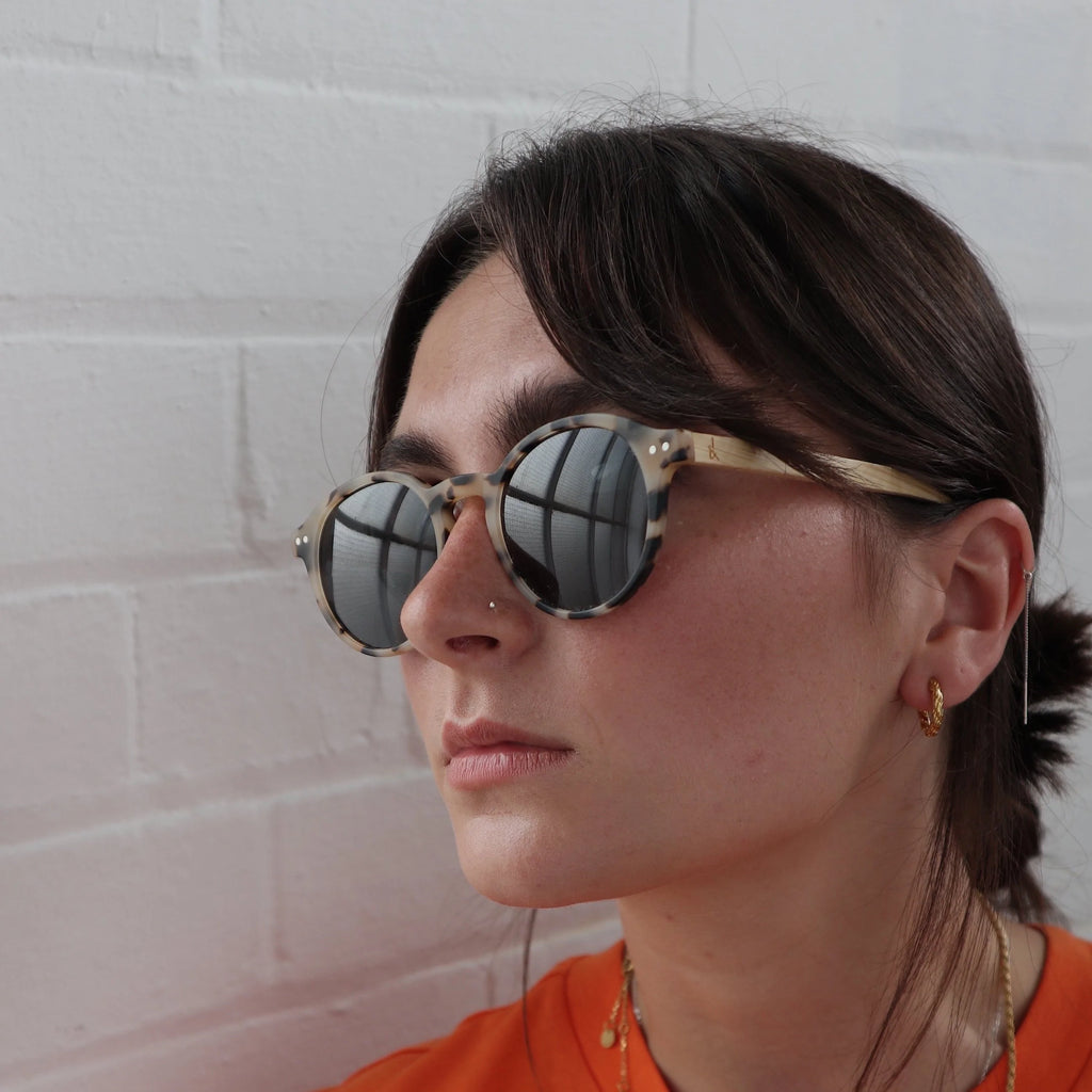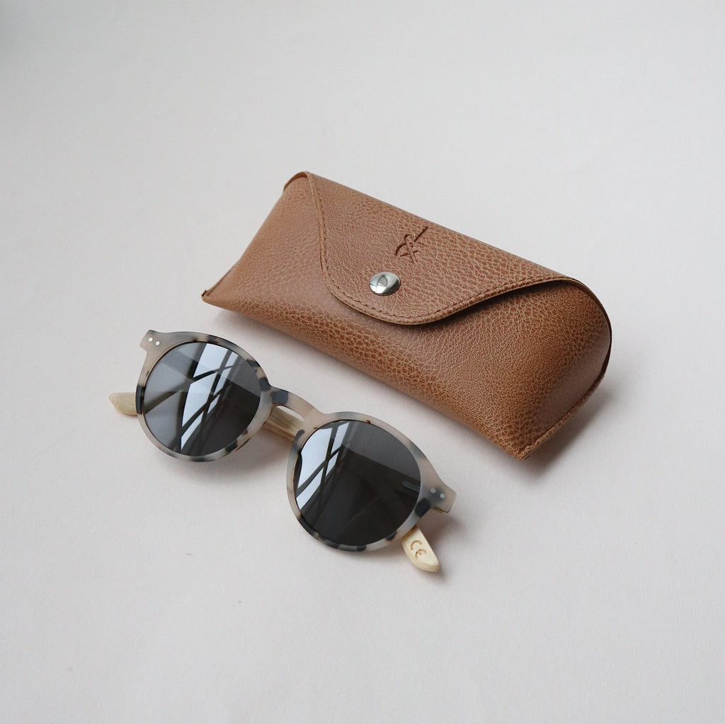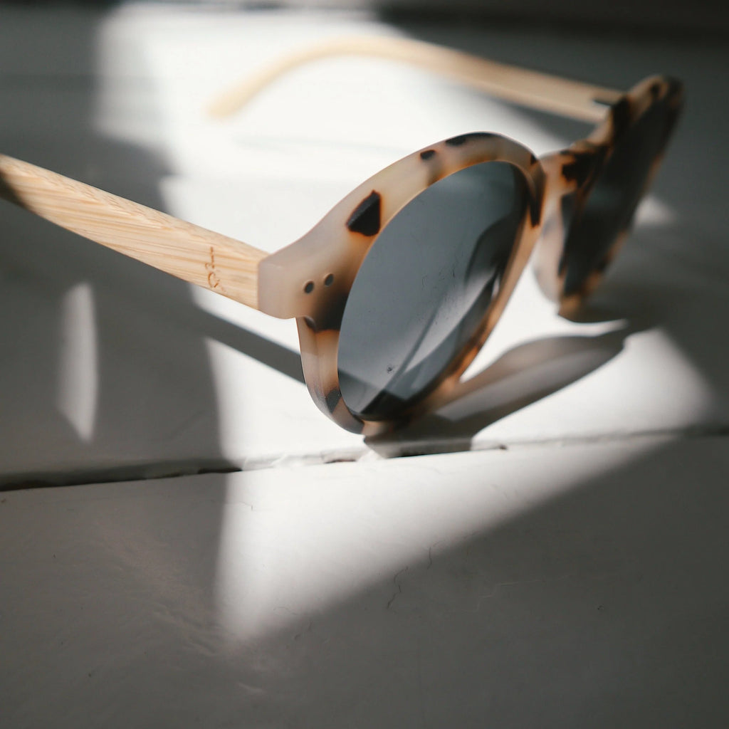 We're vibing somewhere between scholar and urban chic with these vintage-inspired round sunnies. The Harriet sunglasses have a 100 % recycled acetate blonde tortoiseshell frame. She has a small circular aesthetic in keeping with her thin bamboo temples which include a metal spring hinge, small L&C logo and each pair of Harriet frames will arrive in a cute tan coloured vegan leather protective case.