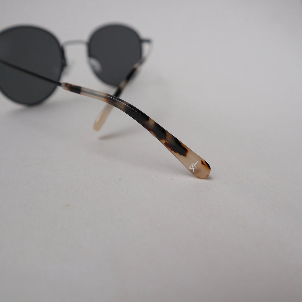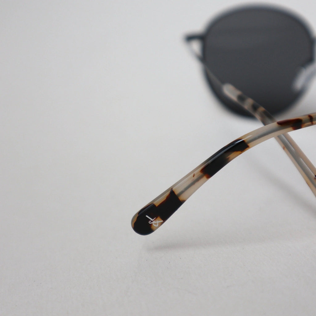 Here's Henri. A minimalist L&C take on a legendary design inspired by mid-century pop culture. Henri takes an iconic design and updates it with a fresh matt black metal rim, linear brow bar and skinny temple finished off with our L&C logo on (our fav bit) a tortoiseshell acetate end tip that fits comfortably around your ear.