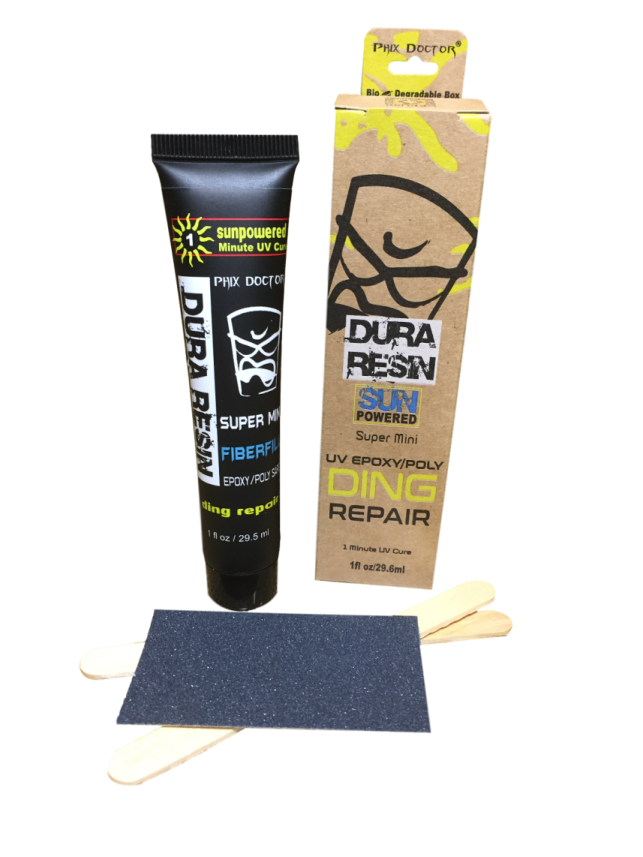 SunPowered and Fiberfilled Resin Includes a Dual Grit Sand Pad and Smoothy Sheets. Safe For Epoxy and Poly Boards. The super versatile, Super Mini is airline approved and delivers pro finish, ultra clear, permanent results with endless shelf life Guaranteed!